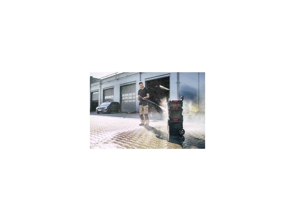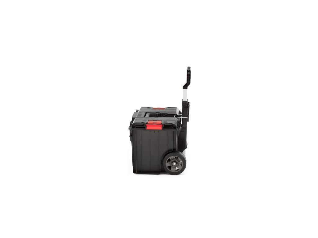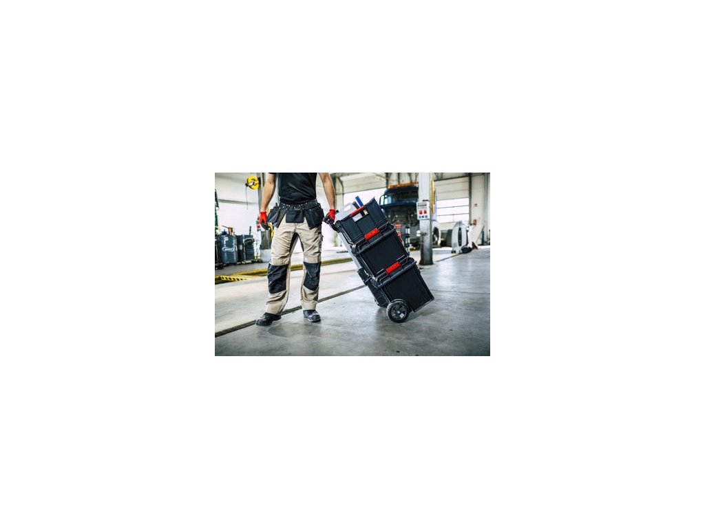- Vonkajšie rozmery: 585 x 438 x 690 mm - Vnútorné rozmery: 440 x 260 x 330 mm - objem50 lVeľký box na náradie na kolieskach zabezpečuje vynikajúcu mobilitu modulárnych systémov Qbrick. Dve pogumované kolesá namontované na kovovej osi umožňujú bezpečnú prepravu aj zložitých súprav. Teleskopická rukoväť, ktorá sa vyklápa spolu s otváraním skrinky na náradie, poskytuje pohodlný prístup do vnútra skrinky na náradie. Každá skrinka na náradie je vybavená flexibilným tesnením, ktoré poskytuje úplnú ochranu proti prachu a vode. Veko (VARIO) pre vozík QS ONE Cart je v štandardnej verzii vybavené prídavnými konektormi, ktoré umožňujú kombinovať túto verziu veka s modelmi boxov na náradie z rady Qbrick System PRO (500, Toolcase, Toolbox, Organizer 100,200,300 a príp. PRO 600). Ide o unikátnu verziu toolboxu, vďaka ktorej môže užívateľ kombinovať prvky z dvoch produktových radov.