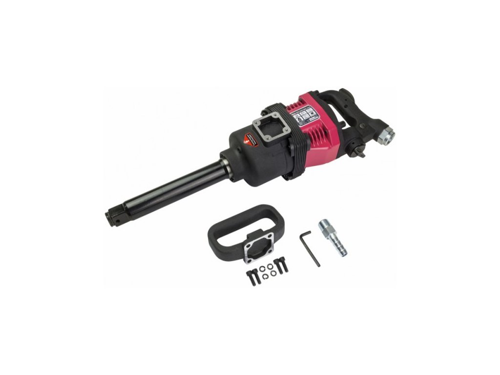 Pneumatický nárazový skrutkovač s krútiacim momentom 2450 Nm, regulovaný 3-stupňovým spínačom, protišmyková rukoväť. Dodáva sa komplet zmontovaný (okrem vsuvky a rukoväte). Profi pneumatický rázový uťahovák 1" 2450 Nm