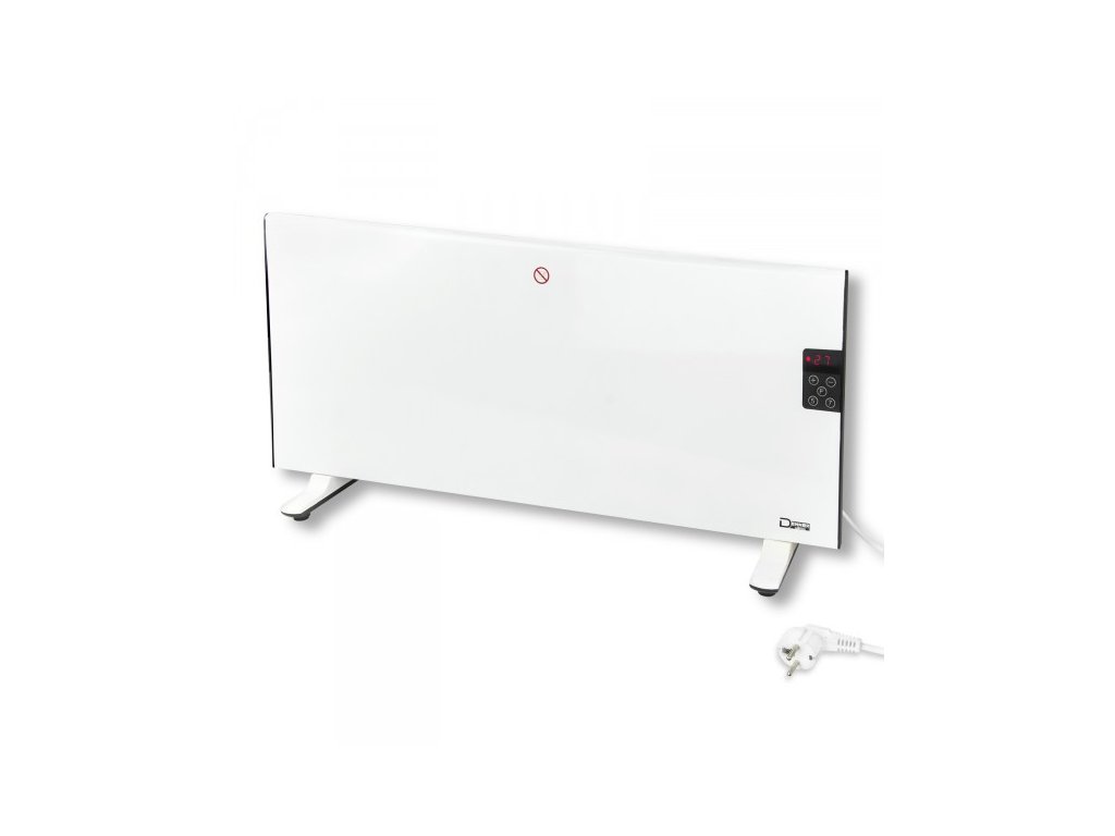 Ohrievač s plynulo nastaviteľnou teplotou pomocou termostatu. LED prevádzkový panel. Programovateľný týždenný program (denné opakovanie) od pondelka do piatku alebo od pondelka do nedele, každý s nočnou prestávkou. Ochrana proti prehriatiu. Len na použitie v interiéri. Elektrický ohrievač 1000 W s LED panelom