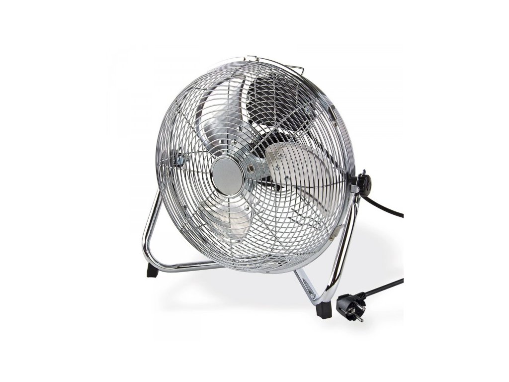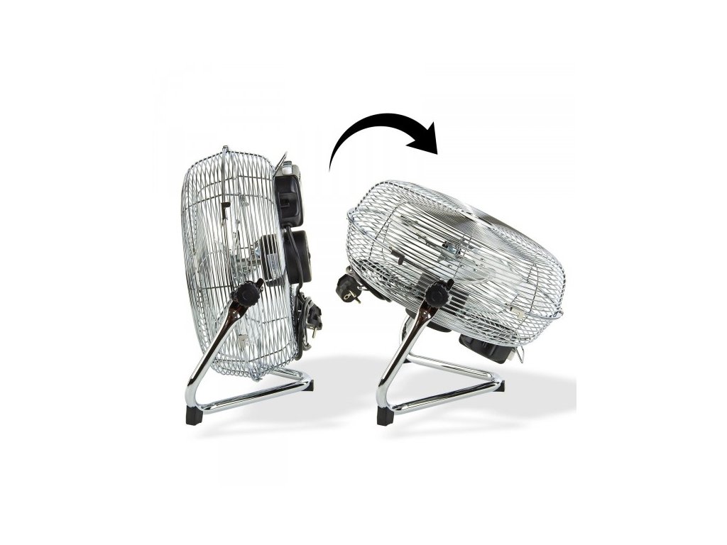 Výkonný podlahový ventilátor s kovovým korpusom a vrtuľou. 3 rýchlosti nastavenia fúkania. Plynule nastaviteľný sklon. Rukoväť na prenášanie. PVC chrániče zabraňujúce poškodeniu podlahy. Prípojka: 230 V/50 Hz
