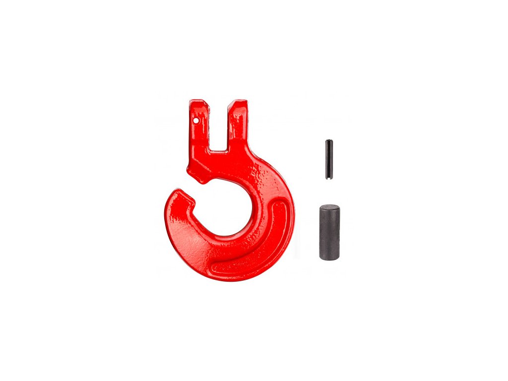 Závesný hák pre lesnícke reťaze s priemerom 10 mm, reťaze na zváženie dreva (ťažné reťaze). Dodáva sa vrátane objímky a zaisťovacieho kolíka. Vysoké zaťaženie v ťahu, s povrchovou úpravou v červenej farbe. Hák reťazový s poistným čapom 10 mm, trieda 8