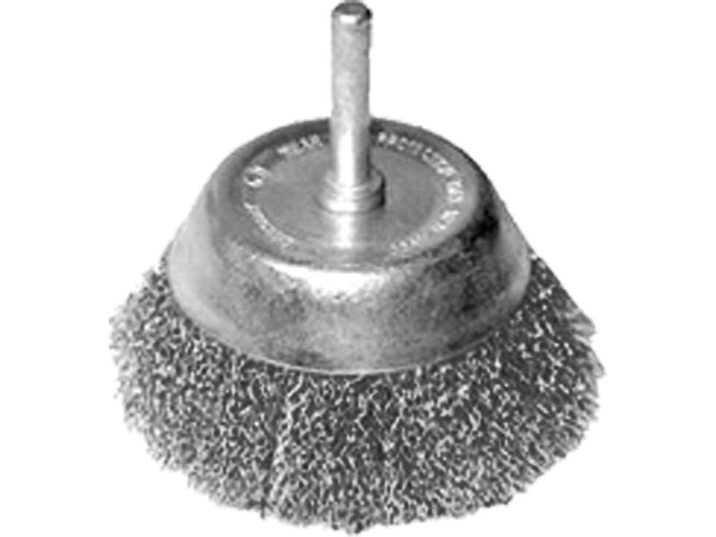 Kartáč hrnčekový so stopkou, vlnitý pomosadzený drôt 0,3mm, 75mm, stopka pr.6mm