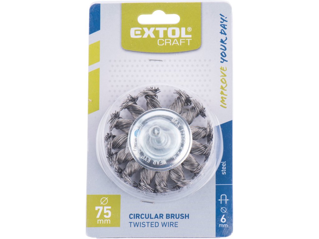 Kartáč okružný so stopkou vrkočový, oceľový drôt 0,5mm, 75mm, stopka pr.6mm