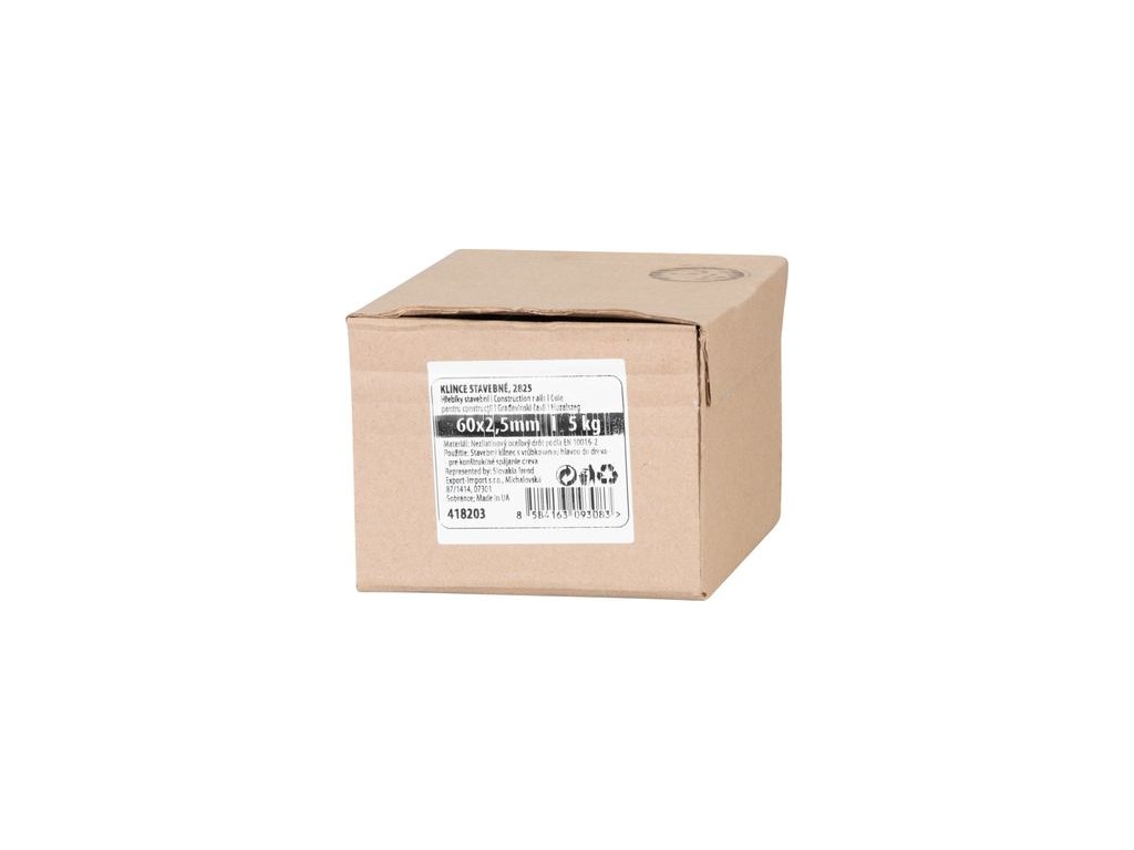 Stavebné klince s plochou hlavou bez povrchovej úpravy. Stavebné klince sú najčastejšie používanou skupinou klincov. Najčastejšie použitie nájde v stavebníctve pri spájaní drevených materiálov pri výrobe rôznych konštrukcií, debnenie, prepravných obalov a pod. Rozmery klinca: 60x2,5 mm. Praktické balenie v krabičke s hmotnosťou 5 kg.