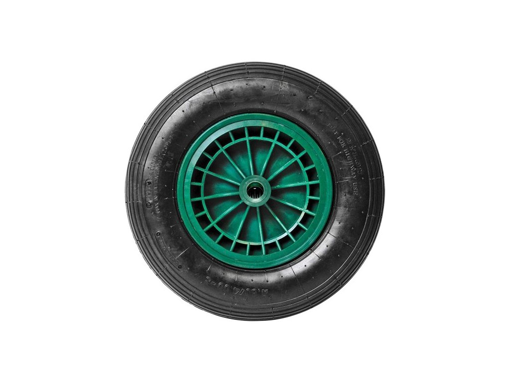 Náhradné koleso na fúrik (obj. číslo: 20448), ktoré je vhodné pre 20 mm čap kolesa. Ľahký plastový ráfik, robustná pneumatiky, valčekové ložisko. Nevhodné na použitie na verejných komunikáciách.