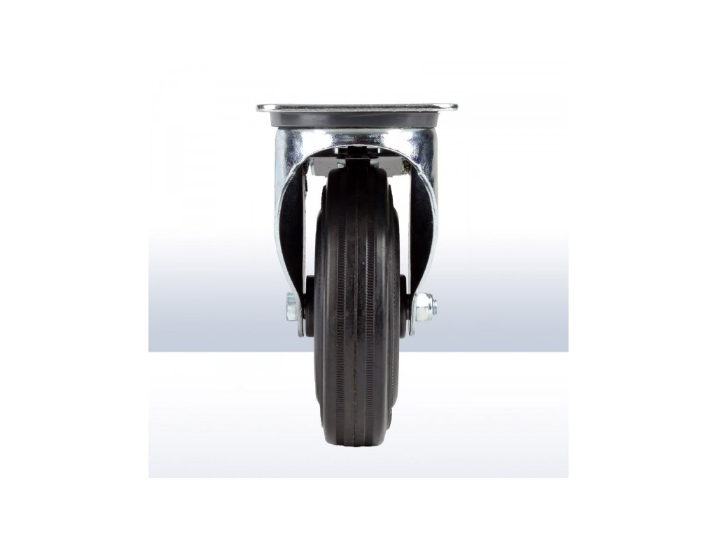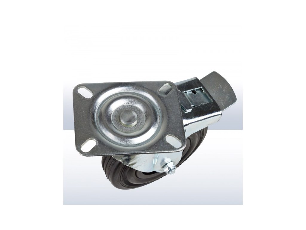 Nosnosť: 60 kg Otočné pogumované koliesko s brzdou, s umelohmotným diskom 125 mm. Nosnosťt: 60 kg