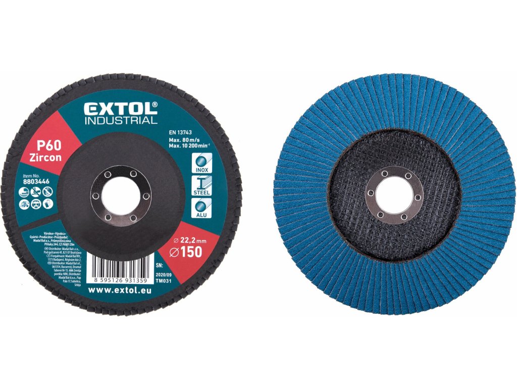 Zirkónové lamelové kotúče Extol Industrial sú vyrobené z materiálov profesionálnej kvality, určené pre najnáročnejšie brúsne práce najmä nerezových, žiaruvzdorných či iných špeciálnych ocelí, ich zvarov, úpravu hrán atď.- sklotextilná podložka