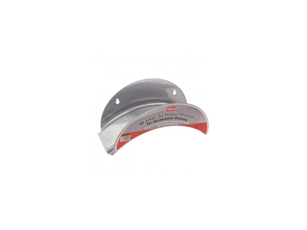 Kovový držiak na hadice do záhrady alebo aj v dielni, lakovaný práškovou farbou. Jednoduchá montáž vďaka otvorom na zavesenie, vhodný na vodovodné hadice, vzduchové hadice a káble. Kovový nástenný držiak na hadicu