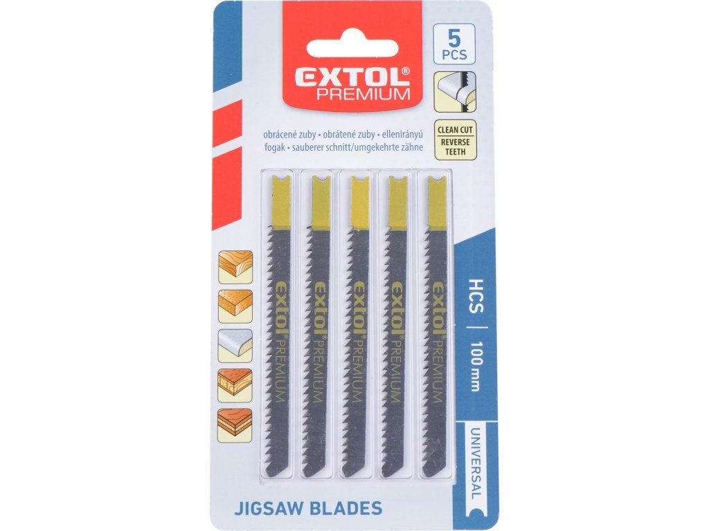 List pílový do priamočiarej pílky 5ks. HCS 75mm, obrát. zuby, úchyt UNIVERSAL, HCS, EXTOL PREMIUM