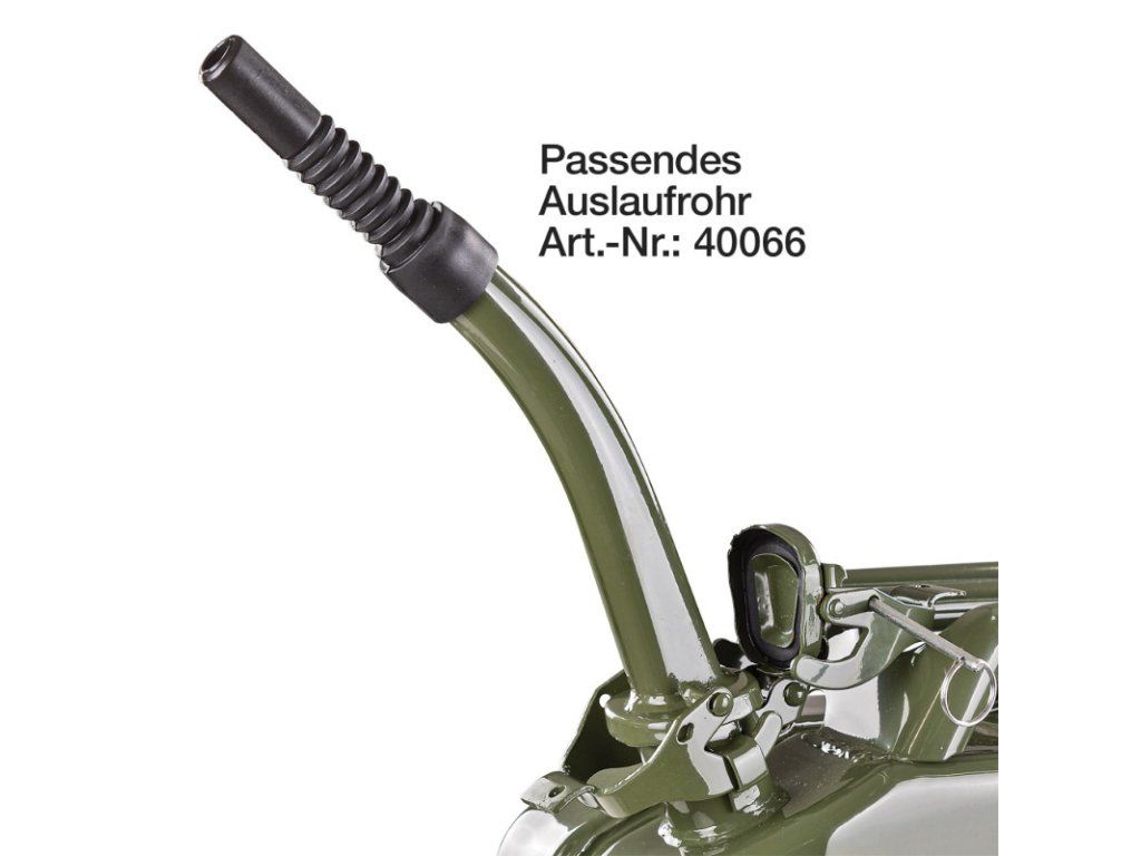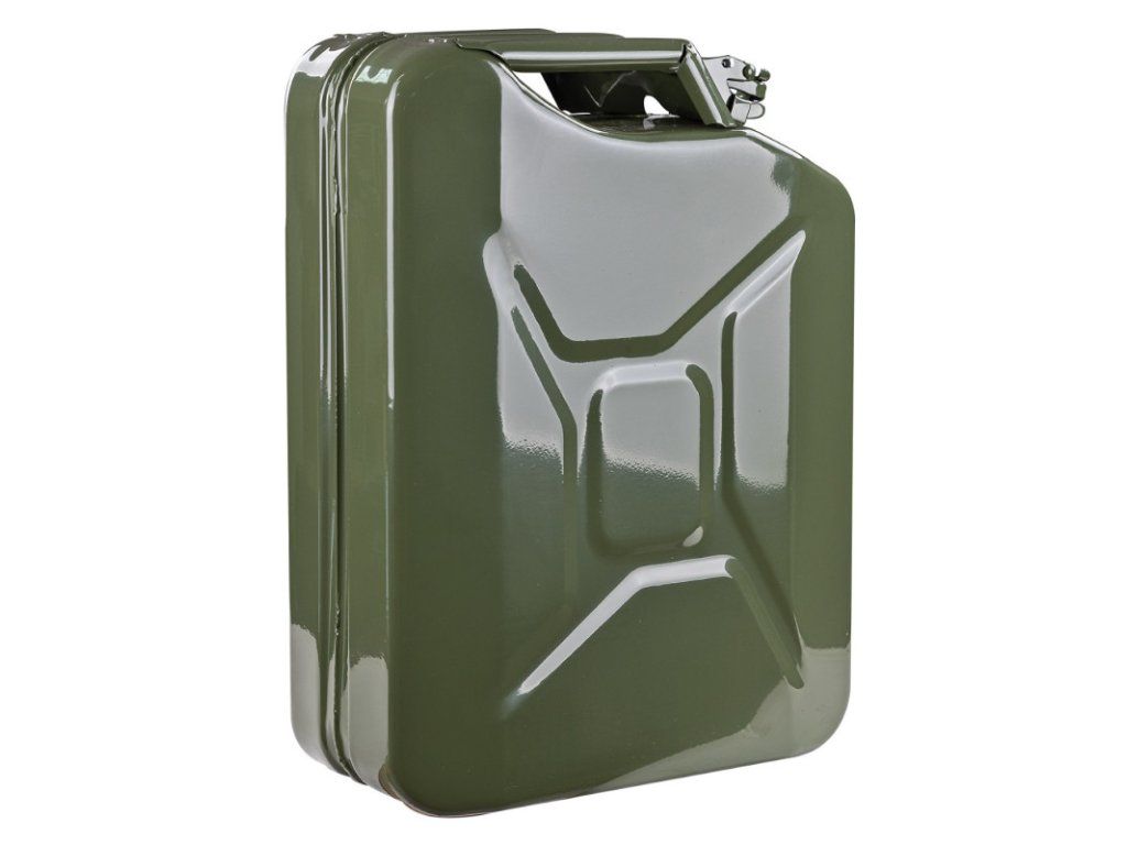 Kanister z oceľového plechu s objemom 20 litrov je ideálny ako rezervný kanister na benzín alebo iné tekutiny. Kanister je vyrobený z pevného oceľového plechu a nalakovaný olivovo zelenou farbou. Tvar a uzáver kanistra spĺňajú vojenské normy, a tak ponúkajú vysokú kvalitu a bezpečnosť. Kanister z oceľového plechu s objemom 20 litrov je ideálny ako rezervný kanister na benzín alebo iné tekutiny. Kanister je vyrobený z pevného oceľového plechu a nalakovaný olivovo zelenou farbou. Tvar a uzáver kanistra spĺňajú vojenské normy, a tak ponúkajú vysokú kvalitu a bezpečnosť. Kanister je vybavený rukoväťou, ktorá uľahčuje prepravu. Kanister na benzín/naftu je testovaný a schválený podľa smerníc OSN*. S poistným kolíkom, pevné, zvárané rukoväte, z vonkajšej strany vysoko odolný práškový náter, vnútorný náter odolný voči palivu. Vhodný pre všetky druhy palív. Bez nalievacieho hrdla (možnosť dokúpiť samostatne pod kódom tovaru 40066KT). Schválenie: OSN / BAM Farba: olivová Kapacita: 20 L Hrúbka steny: 0,8 mm Rozmery (DxŠxV): 347 x 165 x 462 mm Hmotnosť: 4 kg *Kanister na benzín/naftu je testovaný a schválený podľa smerníc OSN. Zaujímavé je aj to, že pri normálnych rezervných kanistroch na palivo podľa smerníc RKK sa vo vozidle smie prepravovať iba jeden kanister. Pri kanistroch schválených OSN sa vo vozidle smú prepravovať aj viaceré kanistre, ale ich celková hrubá hmotnosť je ohraničená na 120 kg.Dodatočné parametre
