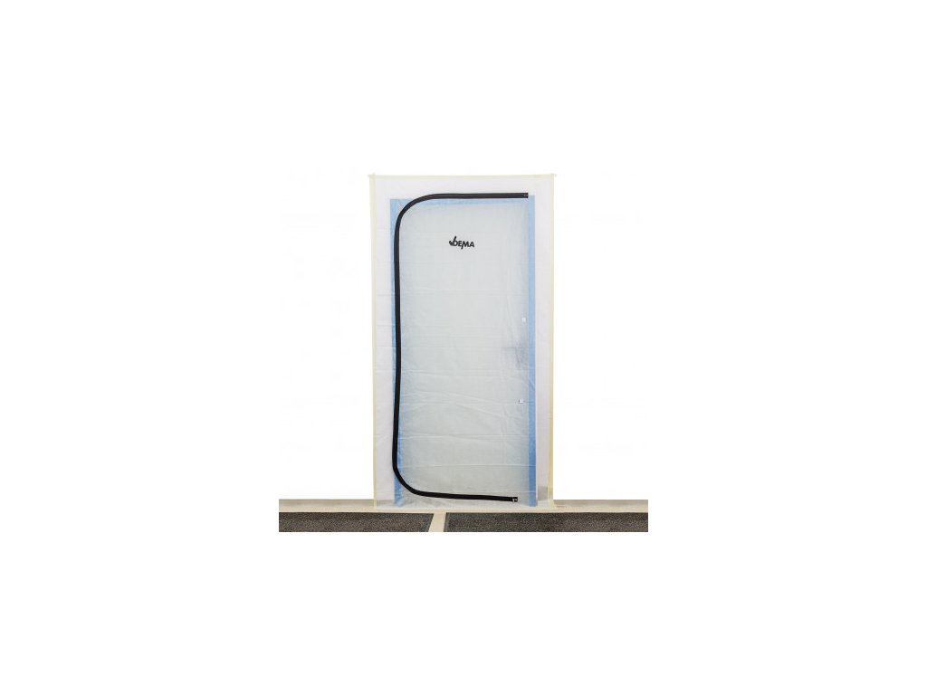 Ochrana dverí z polypropylénovej netkanej textílie sa pripevní jednoduchým nalepením na rám alebo stenu okolo existujúcich dverí alebo slúži ako priechod v kombinácii so stenami na ochranu proti prachu. Suché zipsy pomôžu udržať fóliu pri otvorených dverách a zaručujú tak bezpečné používanie. Ochrana dverí proti prachu so zipsom 1,1x2,2 m z netkanej textílie