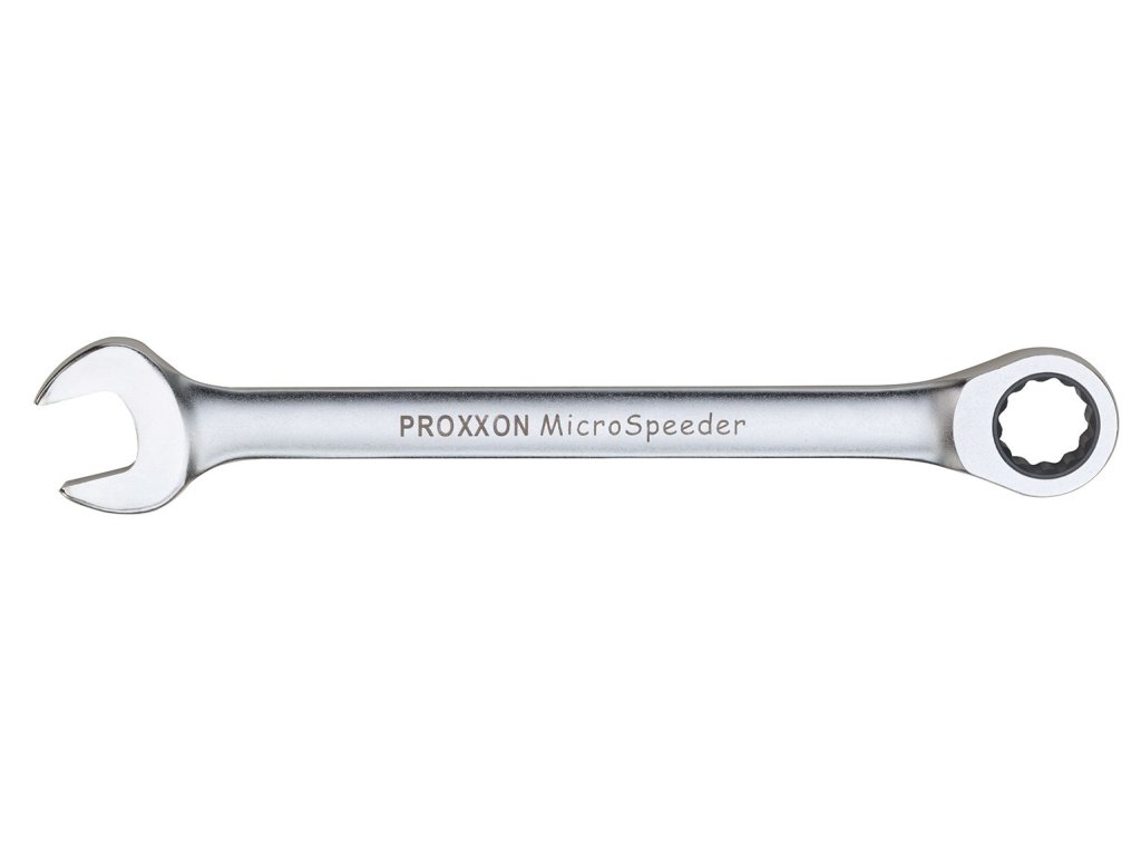 - Očko-plochý rovný račňový kľúč MicroSpeeder s račňovým mechanizmom na očkovej časti bez prepínacej páčky.