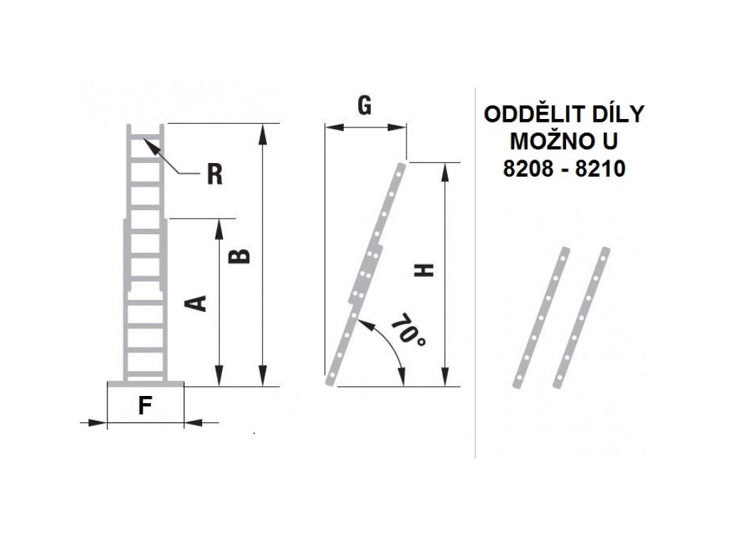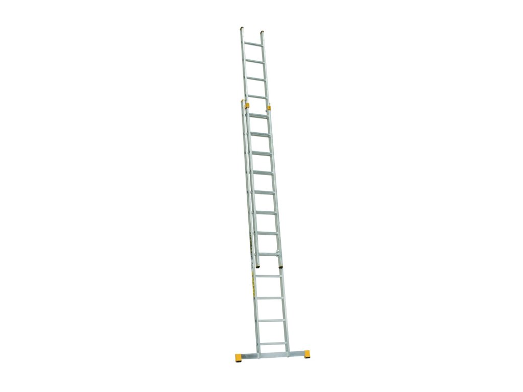 Dvojdielny výsuvný rebrík Forte, počet priečok 2 x 8, max. výsuvná dĺžka 3,83 m a šírka 420 mm. Rebrík možno rozobrať a použiť ako dva jednodielne rebríky s dĺžkou 2,41 m.