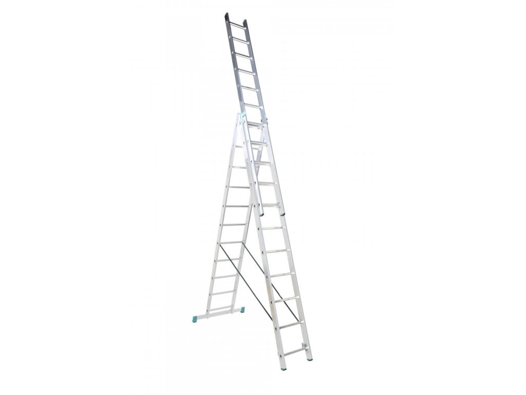 Trojdielny univerzálny rebrík Eurostyl, počet priečok 3 x 10, max. výsuvná dĺžka 6,26 m a šírka 454 mm.