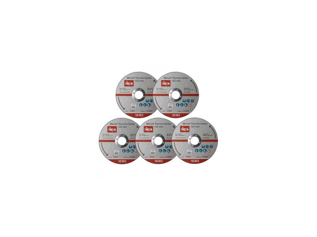 Rezací kotúč na kov do bežných uhlových brúsok so 125 mm kotúčom. Vhodný na nehrdzavejúcu oceľ, oceľ, tenkostenné rúry, profilové plechy, plasty. Tenký rez bez trhlín. V balení 5 ks.
