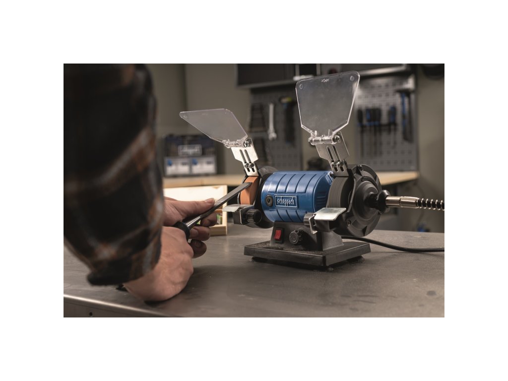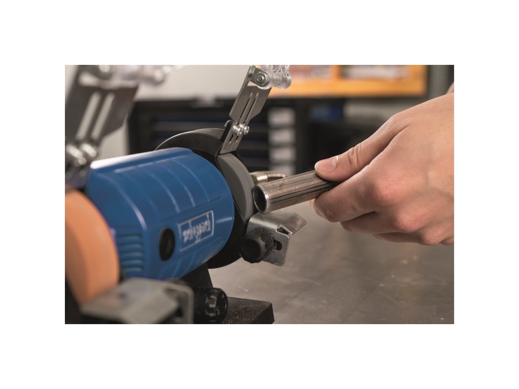 Skvělá víceúčelová bruska-leštička Scheppach HG 35 je neocenitelným pomocníkem pro každého kutila. Díky ní zvládnete velké množství různých úkonů jen s jedním strojem. Základem je jeden brusný a jeden leštící kotouč. Ty jsou vybaveny transparentní ochranou očí proti odlétávajícím zbytkům a opěrnou částí pro opracovávaný obrobek. Poctivé tělo brusky, antivibrační uložení a nastavitelná rychlost otáček od 0 do 11000 ot./min. jsou zárukou profesionálních výsledků. Další možnosti využití přináší flexibilní hřídel o délce 1 m. Díky standardně dodávanému 103 dílnému příslušenství v praktickém dřevěném boxu s ní můžete řezat, brousit nebo leštit mimo brusku samotnou. Stroj můžete přidělat k pracovní desce napevno nebo využít neklouzavé přísavné gumové nožičky.