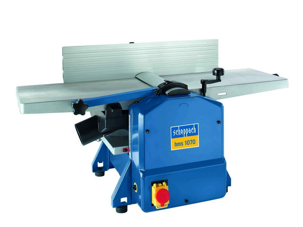 Tento stroj Scheppach HMS 1070 svými parametry a zpracováním představuje naprostý vrchol ve své kategorii. Chytrá kombinace možnosti hoblování i protahu a kompaktní design umožňují minimalizovat prostorové nároky v dílně. Robustní konstrukce zvládá bez problémů práci s hranoly o šířce až 254 mm. Silný motor 1500 W spolu s dvěma ocelovými noži rotujícími rychlostí až 9000 ot./min. se starají o velmi čistý a přesný řez, což v praxi znamená ještě jemnější opracování plochy. Nože jdou velice snadno vyměnit a celé ovládání stroje je velmi jednoduché a komfortní. Na přesnosti opracování se podílí i velmi kvalitní hoblovací stůl a přesná hoblovací zarážka s možností nastavení až do 45 st. Bezpečnostní spínač a možnost odsávání je u strojů Scheppach samozřejmost. Stabilitu stroje i při obrábění delších trámů zajišťují čtyři kovové nohy opatřené pryžovými protiskluzovými podložkami.