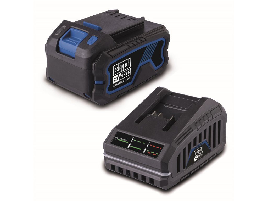 SBSK4.0 - 20 V set nabíječky 2,4 Ah a baterie 4 Ah Scheppach SBSK4.0 je akční startovací sada za výjimečně výhodnou cenu. Obsahuje rychlou nabíječku SBC2.4A a lithium-iontovou baterii SBP4.0 nabitou nejmodernějšími technologiemi s kapacitou 4 Ah. Tato univerzální sada může pohánět jakýkoliv stroj Scheppach z řady 20 V IXES. IXES technology Nejnovější profesionální technologie pro elektronickou regulaci výkonu a ochranu při nabíjení u lithiových akumulátorů. Výsledkem je nejenom precizní průběh nabíjení, kdy je neustále monitorován každý jednotlivý článek v baterii a dle aktuálních potřeb dobíjen, ale i unikátní řízení výkonu, kdy se baterie dokáže optimálně přizpůsobit kterémukoliv stroji z řady Scheppach IXES 20V a poskytnout vždy maximální výkon a využít maximálně svou kapacitu. Dalším pozitivním dopadem této technologie je zvýšení životnosti akumulátoru, maximální prodloužení doby chodu stroje na jedno nabití a ochrana samotné baterie před přetížením nebo přehřátím. Ukazatel stavu nabití Jednoduchá indikace stavu nabití baterie pomocí 3 integrovaných LED diod. Indikátor není součástí stroje, ale baterie, takže můžete zjistit okamžitou kapacitu baterie, aniž ji musíte vkládat do stroje. Výkonné články baterie Kvalitní lithium-iontové články spolu s chytrou elektronikou umožňují okamžitý přísun potřebné energie i ve chvíli skokového zvýšení potřebného výkonu. Články jsou chráněné proti nárazu odolnou konstrukcí baterie s vestavěnou ochranu proti nárazu a pogumovaným krytem baterie. Jedna 20 V baterie pohání vše Je spousta systémů, kde Vám stačí jedna baterie na celou škálu nářadí. Díky chybějící nebo levné elektronice se často stane, že baterie s některým strojem funguje dobře, ale s jiným ne. Je to proto, že v odběrových křivkách různých druhů strojů jsou obrovské rozdíly. Díky vyspělé elektronice baterie "pozná", ve kterém stroji Scheppach je a dokonale se mu přizpůsobí. Vy tak dostanete z každého stroje maximální výkon i pracovní dobu. Nabíjecí systém SBC2.4A je kompaktní rychlá nabíječka, kterou lze nabíjet všechny 20 V lithium-iontové akumulátory Scheppach řady IXES. Jedná se o moderní inteligentní nabíječku, která sleduje stav jednotlivých článků, jejich teplotu a napětí a podle toho řídí jejich dobíjení. Ve výsledku se tak výrazně zvyšuje životnost baterie a maximalizuje počet nabíjecích cyklů akumulátoru. Nabíječka je vybavená indikací stavu nabíjení i možných chybových hlášení pomocí LED diod. 4,0 Ah akumulátor nabijete přibližně za 120 minut. Nabíječku můžete postavit na pracovní stůl nebo pomocí integrovaného držáku zavěsit na zeď. Součásti balení: baterie SBP4.0 nabíječka SBC2.4ADodatočné parametre