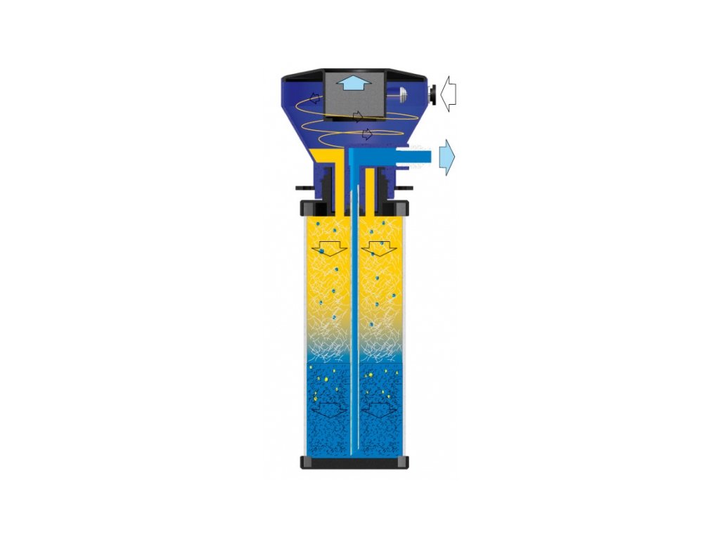 - Vícestupňová separace probíhá pomocí filtru a aktivního uhlí