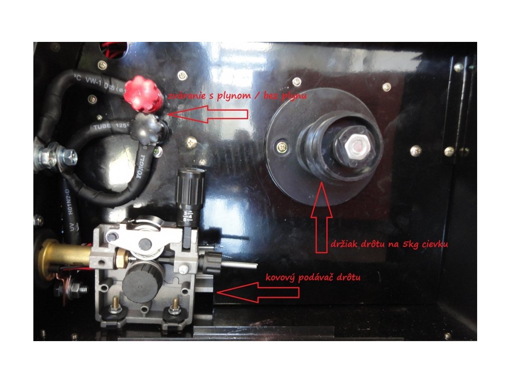 - Ani pri veľkom zaťažení sa stroj nepriehrieva. Má kovový podávač drôtu. Možnosť použitia 5kg cievky.