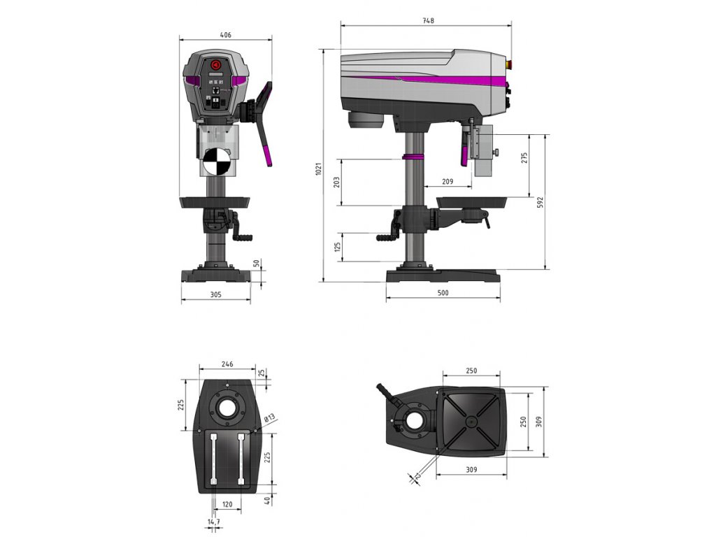 | Max. vzdálenost vřetene a základny: | 592 mm |