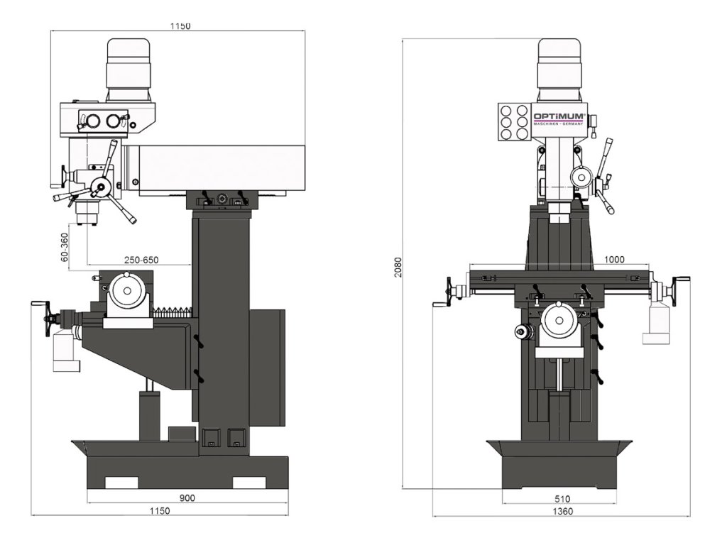 Univerzální vrtačko-frézka pro horizontální i vertikální frézování. Obsah dodávky: Sklíčidlo s klíčem 3 - 16 mm / B 18;Upínací trn pro sklíčidlo ISO40 / B18;T - matice;Redukce ISO40-MK 3;Redukce MK 3-MK 2;Seřizovací nářadíDodatočné parametre