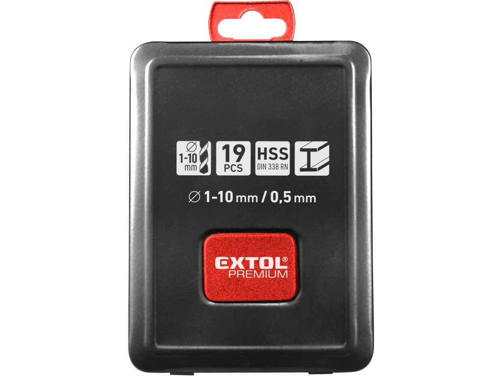 Vrtáky do kovu, HSS, DIN338, 19-dielna sada, pr. 1-10mm/0,5mm, kovové puzdro, HSS, EXTOL PREMIUM