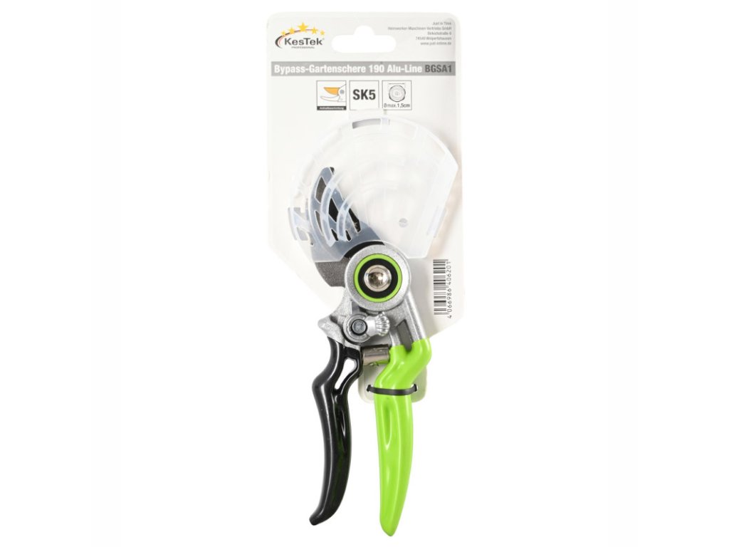 Záhradné nožnice typu bypass na udržiavanie pekne upravenej záhrady. Záhradnícke nožnice z modernej série Black Line výborne strihajú kríky, ruže, malé konáre, kvety, tŕne a podobne. Sú vyrobené z kvalitnej hliníkovej zliatiny. Záhradné nožnice typu bypass na udržiavanie pekne upravenej záhrady. Záhradnícke nožnice z modernej série Black Line výborne strihajú kríky, ruže, malé konáre, kvety, tŕne a podobne. Sú vyrobené z kvalitnej hliníkovej zliatiny. Tvrdená čepeľ z nástrojovej ocele SK5 a oceľová podpera sú vysoko odolné proti opotrebovaniu. Čepeľ nožníc má nepriľnavý a antikorózny povrch a chráni ostrie pred nečistotami a hrdzou. Ergonomicky tvarované protišmykové rukoväte s dvojstupňovým nastavením a silná pružina nožníc zaisťujú prácu bez námahy. Maximálny strihací výkon záhradníckych nožníc typu bypass je 15 mm. Čepeľ sa dá odobrať, keď ju treba naostriť. Uzáverová páčka pre pohodlné ovládanie jednou rukou. Materiál rukoväte: hliníková zliatina Materiál čepele: nástrojová oceľ SK5 s nepriľnavou vrstvou Farba: čierna, zelená Strihací výkon: konáre s maximálnym priemerom 15 mm Dĺžka čepele: 55 mm Celkové rozmery: 190 x 65 x 31mm Hmotnosť: 229 gDodatočné parametre